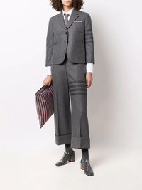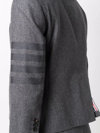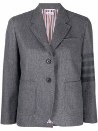 4-Bar stripe single-breasted blazer Thom Browne's blazer showcases the brand's expert suiting - the brand's founder spent his formative years as a tailor. Featuring three brand signatures, this single-breasted style has a cropped waist and cuffs that nod to the label's penchant for shortened hemlines, the iconic 4-Bar stripe motif and RWB tri-stripe print printed on the lining. Made in Italy Composition Cotton 100% SIZE & FIT Model measurements Height 5 ft 10 in(1.79 m) Bust/Chest 31.88 in(81 cm) Hips 35.43 in(90 cm) Waist 23.62 in(60 cm) FittingInformation This piece fits true to size. We recommend you get your regular size Cut for a slim fit Made with a mid-weight fabric