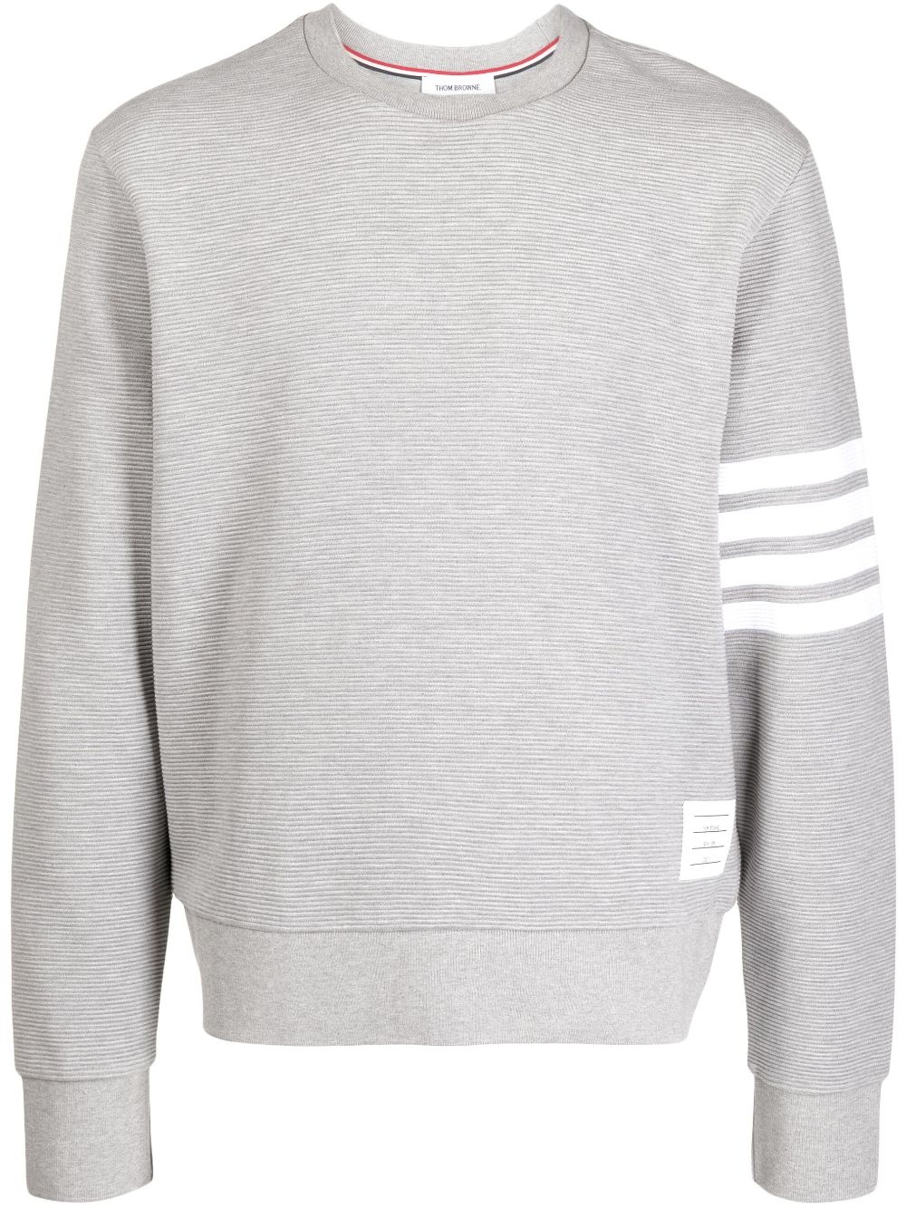 4-Bar stripe sweatshirt Thom Browne's sweatshirt is punctuated with the brand's 4-Bar stripe, an iconic signature that debuted in 2008. This long-sleeve design is cut from subtly ribbed cotton with a buttoned placket. Notice the grosgrain ribbon loop at the rear. Highlights - Light grey - Cotton - Signature 4-bar stripe - Grosgrain ribbon trim - Crew neck - Long sleeves Made in Italy Composition Cotton 100% SIZE & FIT Model measurements Height 6 ft 2 in(1.87 m) Bust/Chest 36.22 in(92 cm) Hips 37.79 in(96 cm) Waist 28.34 in(72 cm)