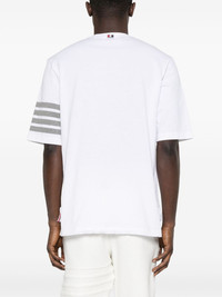 4-Bar stripe T-shirt Highlights - White - Crew neck - Short sleeves - Side slits - High-low hem Made in Italy Composition Cotton 100% SIZE & FIT Model measurements Height 6 ft 0 in(1.84 m) Bust/Chest 35.82 in(91 cm) Hips 37 in(94 cm) Waist 28.34 in(72 cm) FittingInformation Designed for a slim fit, offering a comfortable fit that sits just away from the body Made from a midweight non-stretch fabric, this piece offers minimal elasticity when worn Washing instructions Machine Wash