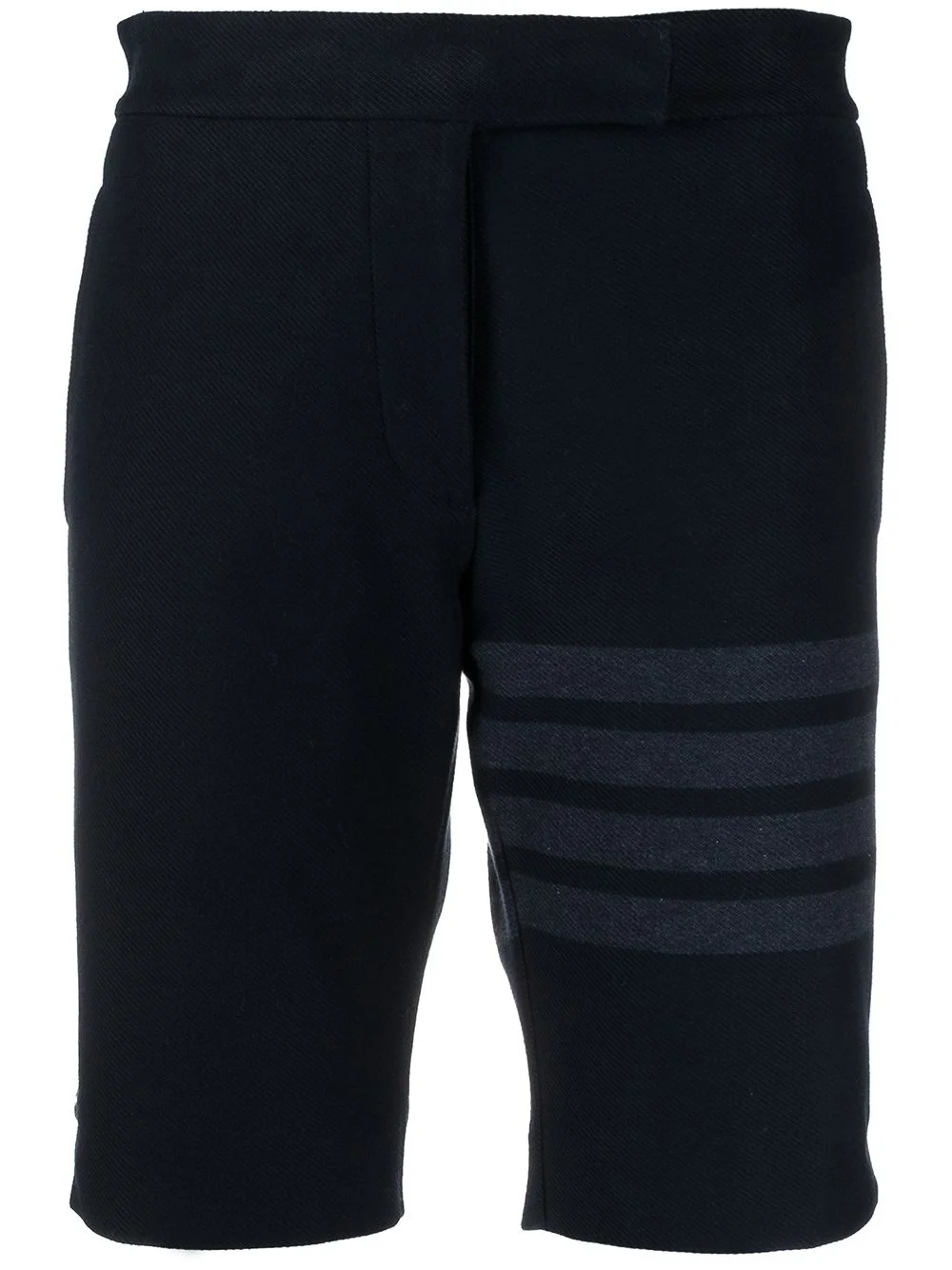 4-Bar stripe twill shorts We all love Marilyn Monroe, right? But let's face it we couldn't quite pull off a skirt-blowing scene like her, especially not in the office. But thankfully Thom Browne saves you (and your colleagues) from the embarrassment in this more practical pair of knee-length twill shorts. No less iconic. Made in Italy Composition Cotton 100% SIZE & FIT Model measurements Height 5 ft 10 in(1.79 m) Bust/Chest 32.67 in(83 cm) Hips 35.03 in(89 cm) Waist 24.8 in(63 cm) FittingInformation This piece fits true to size. We recommend you get your regular size Cut for a slim fit Made with a mid-weight non-stretch fabric Washing instructions Dry Clean Only