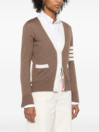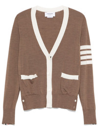 4-Bar stripe wool cardigan Highlights - Walnut brown - Front button fastening - V-neck - Long sleeves - Two side patch pockets Made in Italy Composition Virgin Wool 100% SIZE & FIT Model measurements Height 5 ft 11 in(1.8 m) Bust/Chest 31.49 in(80 cm) Hips 35.82 in(91 cm) Waist 24.8 in(63 cm) FittingInformation Designed for a slim fit that sits just away from the body offering a close yet comfortable fit Made with a midweight knit, this piece offers some stretch
