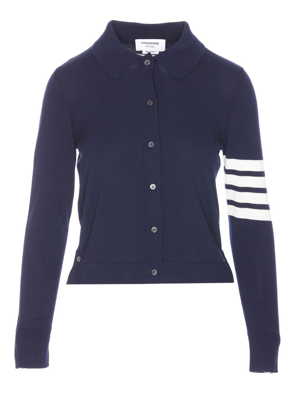 4 Bar Stripes jersey polo shirt Highlights - Navy blue - Front button fastening - Buttoned cuffs - Signature grosgrain side tabs - Signature grosgrain loop tab Made in Italy Composition Cotton 100%