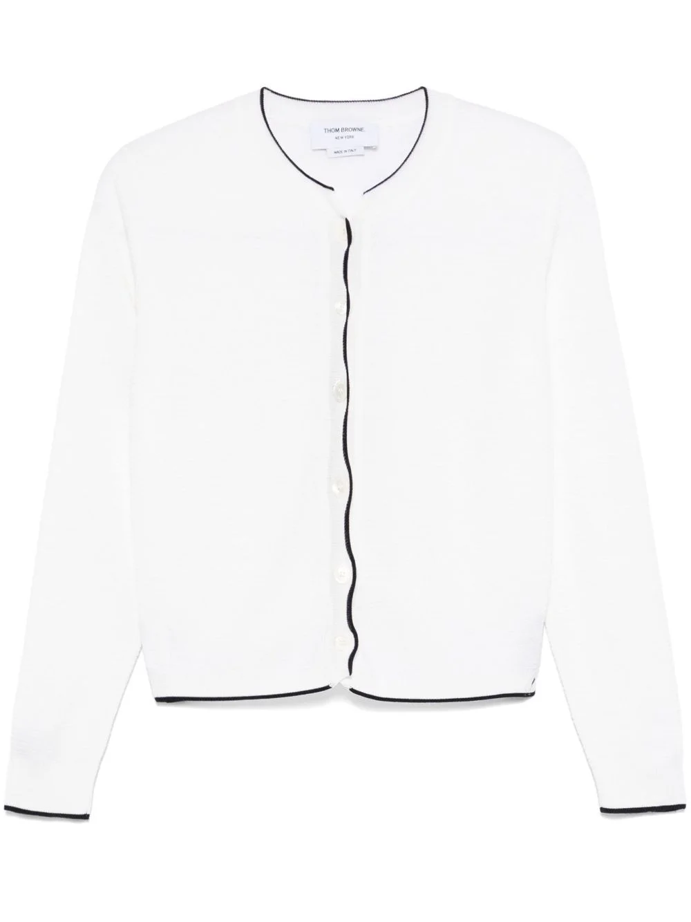 4 Bar Stripes textured cardigan Highlights - White - Front button fastening - Side button fastening - Signature grosgrain side tabs - Signature grosgrain loop tab Made in Italy Composition Virgin Wool 100% Washing instructions Dry Clean Only