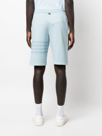 4-Bar track shorts New York-based label THOM BROWNE is known for presenting collections with recurring signature logos and detailing. A fine example are these loopback cotton shorts that come complete with the iconic 4-Bar striped pattern across the leg for a final touch. Highlights - Light blue - Cotton - Loopback knit - Signature 4-bar stripe - Rwb stripe - Elasticated drawstring waistband - Two side slit pockets - Straight hem Imported Composition Outer: Cotton 100% SIZE & FIT Model measurements Height 6 ft 2 in(1.87 m) Bust/Chest 36.41 in(92.5 cm) Hips 37 in(94 cm) Waist 29.52 in(75 cm) FittingInformation Designed for a regular fit, offering an even fit over the leg Adjust this piece’s waistband to your preference using the drawstring Made from a midweight non-stretch fabric, this piece offers minimal elasticity when worn This piece fits true to size – take your usual size