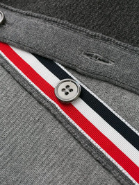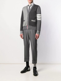 4-Bar V-neck cardigan Highlights - Grey - Cotton - Contrasting panel detail - Signature 4-bar tab - Ribbed detailing - V-neck - Front button fastening - Two side welt pockets - Long sleeves - Straight hem Made in Italy Composition Cotton 100% SIZE & FIT Measurement CHEST 37.79 in(96 cm) Shoulder Width 16.14 in(41 cm)