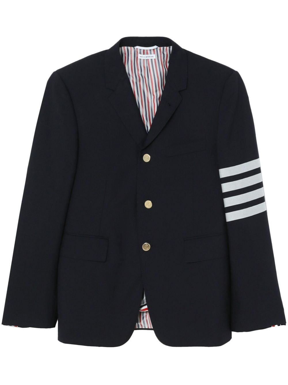 4-Bar stripe single-breasted blazer Highlights - Navy blue - Wool - Signature 4-bar stripe - Signature grosgrain loop tab - Notched lapels - Long sleeves - Front button fastening - Straight hem Made in Italy Composition Wool 100% Washing instructions Dry Clean Only
