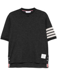 4-Bar wool T-shirt Highlights - Charcoal grey - Short side slits - Rwb stripe - High-low hem Made in Italy Composition Virgin Wool 100% SIZE & FIT Model measurements Height 6 ft 2 in(1.87 m) Bust/Chest 38.18 in(97 cm) Hips 36.61 in(93 cm) Waist 29.13 in(74 cm) FittingInformation Designed for a relaxed fit, this piece allows for comfort and movement when worn Made from a midweight non-stretch fabric, this piece offers minimal elasticity when worn