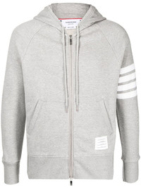 4-Bar zip-up hoodie Thom Browne is known for presenting wardrobe staples with a tailored edge. Like this zip-up hoodie, crafted from grey cotton and enhanced with a signature 4-Bar stripe at the sleeve. Imported Composition Body: Cotton 100% SIZE & FIT Model measurements Height 6 ft 0 in(1.83 m) Bust/Chest 37.79 in(96 cm) Hips 37 in(94 cm) Waist 30.31 in(77 cm) Measurement CHEST 39.37 in(100 cm) LENGTH 24.8 in(63 cm) Washing instructions Hand Wash