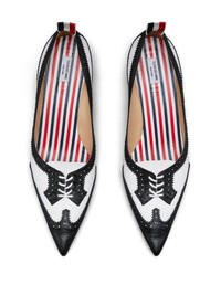 50mm Wingtip pumps Highlights - Black/white - Calf leather - Panelled design - Slip-on style - 50mm sculpted heel - Signature grosgrain loop tab - Perforated detailing - Pointed toe - Branded leather insole - Leather sole Made in Italy Composition Sole: Calf Leather 100% Outer: Calf Leather 100% Lining: Calf Leather 100% SIZE & FIT Measurement HEEL 1.96 in(5 cm)