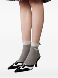 75mm heeled brogue mule Highlights - Black - Brogue detailing - Pointed toe Made in Italy Composition Sole: Calf Leather 100% Lining: Goat Skin 100% Outer: Patent Calf Leather 100% SIZE & FIT Measurement HEEL 2.95 in(7.5 cm)