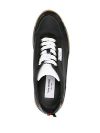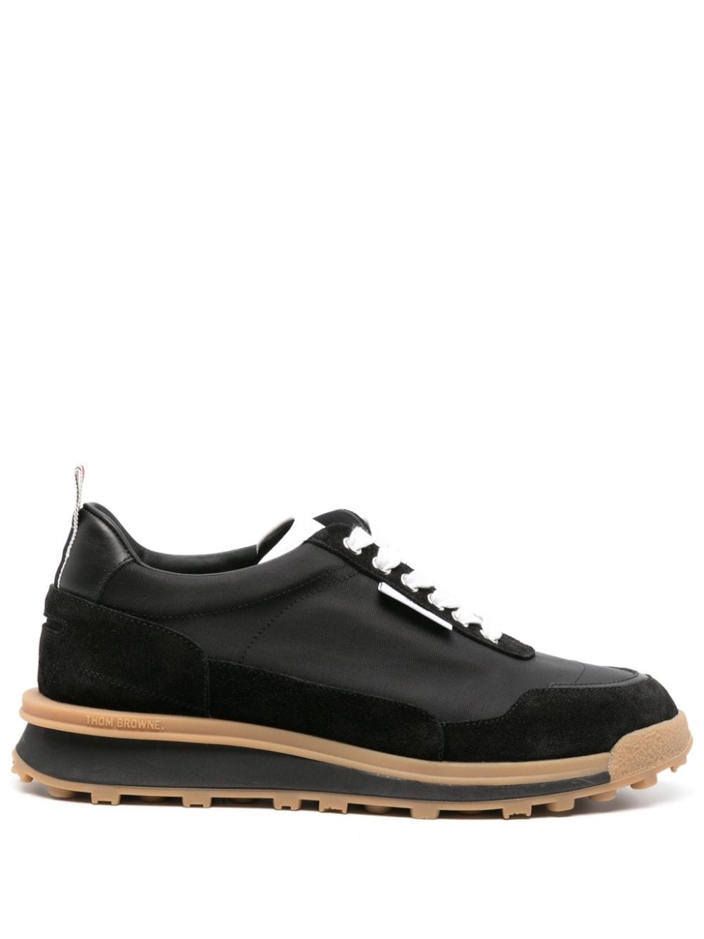 Alumni suede sneakers Thom Browne’s sneakers are crafted from panels of black technical ripstop and suede. They’re adorned with a signature RWB grosgrain loop at the heel counter. Highlights - Black/white - Panelled design - Suede panelling - Mini logo tag - Logo patch at the tongue - Signature grosgrain loop tab - Logo at the sole - Round toe - Front lace-up fastening - Padded ankle - Pull-tab at the heel - Leather lining - Branded insole - Studded rubber sole Made in Italy Composition Leather 100% SIZE & FIT Measurement HEEL 1.1 in(2.8 cm) Sole height 0.59 in(1.5 cm)