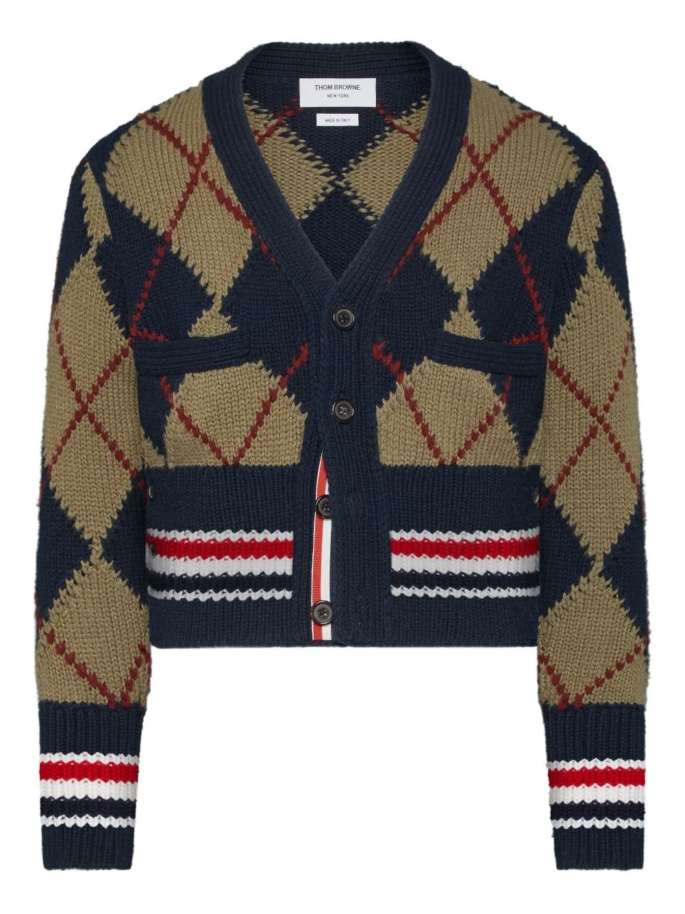 MERINO WOOL ARGYLE INTARSIA V NECK CARDIGAN