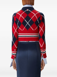 Red Argyle Intarsia Merino Wool Shrunken Cardigan