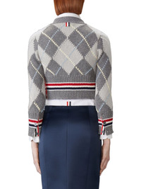 Gray Argyle Intarsia Merino Wool Shrunken Cardigan