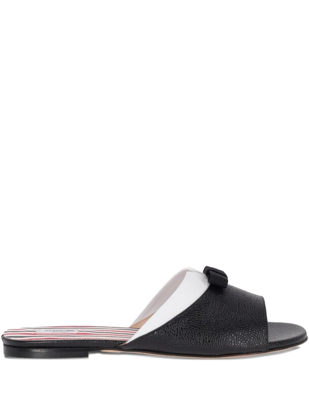 Beis flat sandals Highlights - Black and white - Textured leather - Open toe - Flat sole - Bow detail - Striped insole Made in Italy Composition Outer: CALFSKIN 100% Lining: Calf Leather 100% Sole: Calf Leather 100%