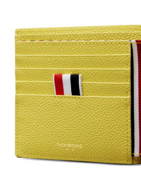 bi-fold wallet Highlights - yellow - Grained calf leather - Multiple card slots - Stitched edges - Grosgrain ribbon detail - Bi-fold design Made in Italy Composition Lining: Recycled Polyester 68%, Polyester 27%, Acrylic 5% Outer: Grained Calf Leather 100%