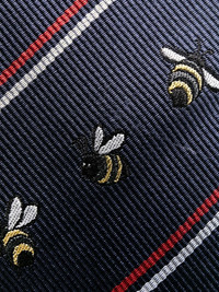 Birds And Bees print silk tie Birds And Bees print silk tie from THOM BROWNE featuring navy blue, yellow, silk, RWB stripe, diagonal stripe pattern, all-over graphic print, self-tie fastening and pointed tip. Made in Italy Composition Outer: Silk 100% Washing instructions Dry Clean Only