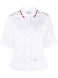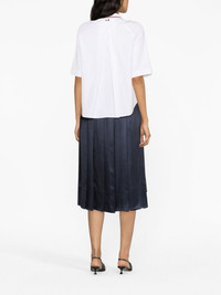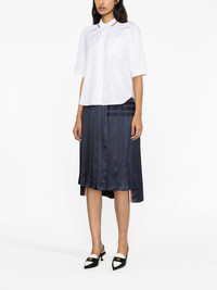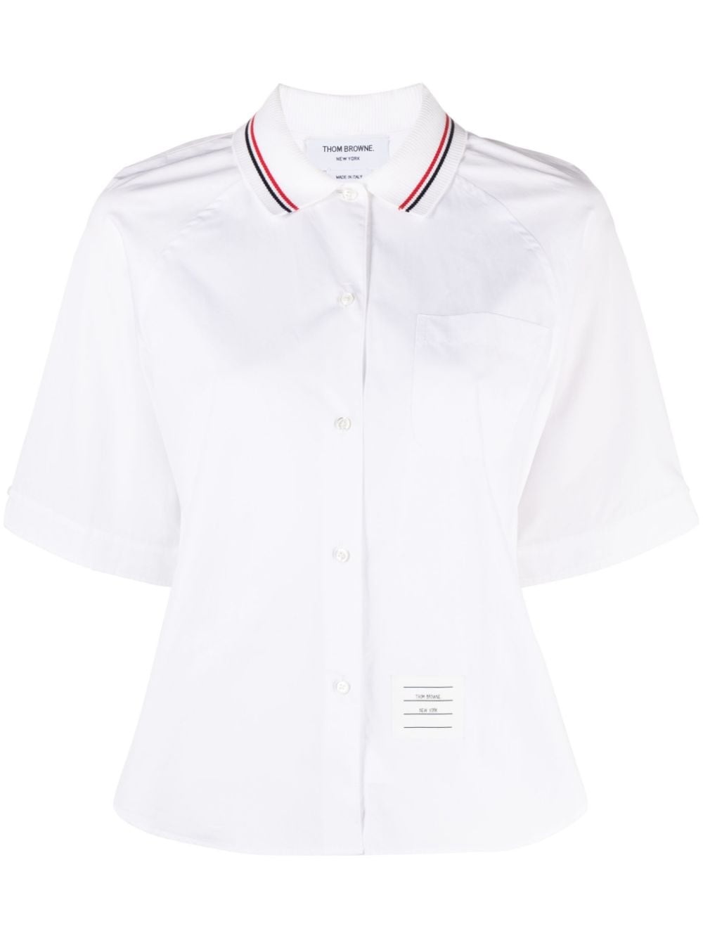 Box pleat cotton shirt Highlights - Cloud white - Cotton - Logo patch to the front - Chest welt pocket - Pointed flat collar - Drop shoulder - Short sleeves - Straight hem Made in Italy Composition Outer: Cotton 100% Cotton 95%, Polyamide 3%, Elastane 2% SIZE & FIT Model measurements Height 5 ft 10 in(1.78 m) Bust/Chest 31.49 in(80 cm) Hips 35.03 in(89 cm) Waist 23.62 in(60 cm) Measurement LENGTH 23.62 in(60 cm) WAIST 38.18 in(97 cm) SLEEVE LENGTH 15.35 in(39 cm) FittingInformation Designed for a boxy fit, intended for a loose fit throughout Made from a midweight non-stretch fabric This piece fits true to size – take your usual size