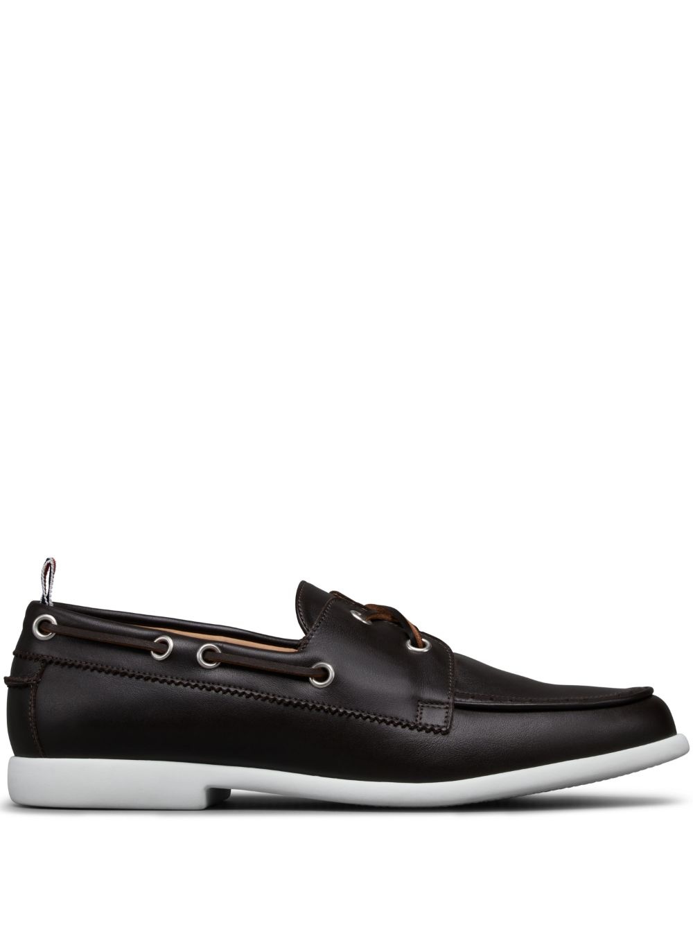 Brogue boat shoes Highlights - Dark brown - Calf leather - Smooth grain - Slip-on style - Signature grosgrain loop tab - Metal eyelet detailing - Round toe - Rubber sole Made in Italy Composition Sole: Rubber 100% Lining: Calf Leather 100% Outer: Calf Leather 100%