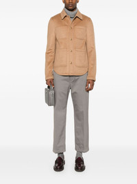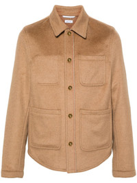 brushed-effect jacket Highlights - Camel brown - Brushed effect - Signature grosgrain loop tab - Classic collar - Long sleeves - Press-stud fastening cuffs - Three front patch pockets - Internal slip pocket - Curved hem - Front press-stud fastening Made in Italy Composition Lining: Cupro 100% Outer: Camel Hair 100% SIZE & FIT Model measurements Height 6 ft 2 in(1.88 m) Bust/Chest 35.03 in(89 cm) Hips 35.82 in(91 cm) Waist 27.95 in(71 cm) FittingInformation Designed for a regular fit, allowing for a comfortably loose fit throughout the body Made from a midweight non-stretch fabric This piece fits true to size – take your usual size Measurement CHEST 62.99 in(160 cm) SLEEVE LENGTH 34.84 in(88.5 cm) LENGTH 31.49 in(80 cm) Shoulder Width 18.11 in(46 cm)