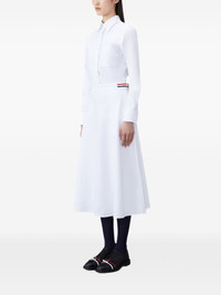 White Oxford High Waisted A-Line Below The Knee Shirtdress