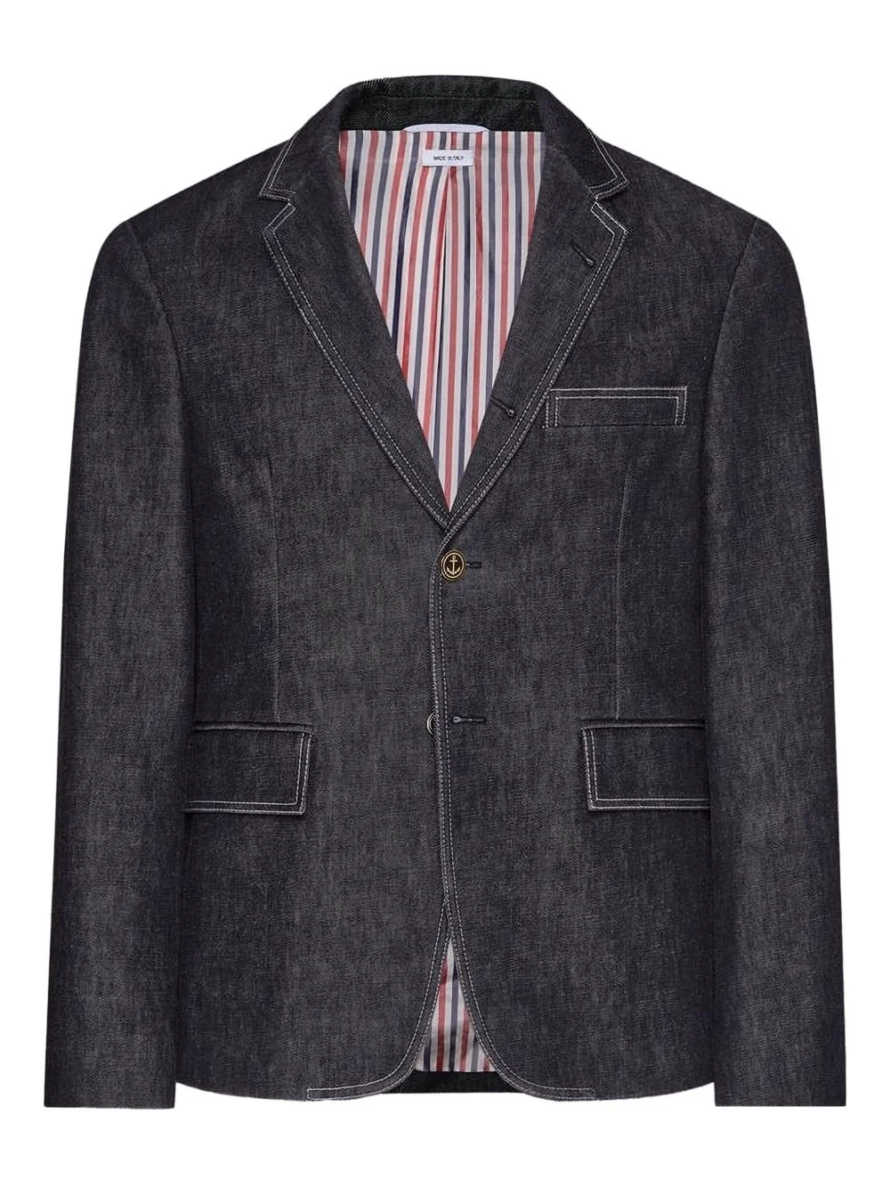 Washed Denim Contrast Topstitching Unconstructed Classic Sport Coat