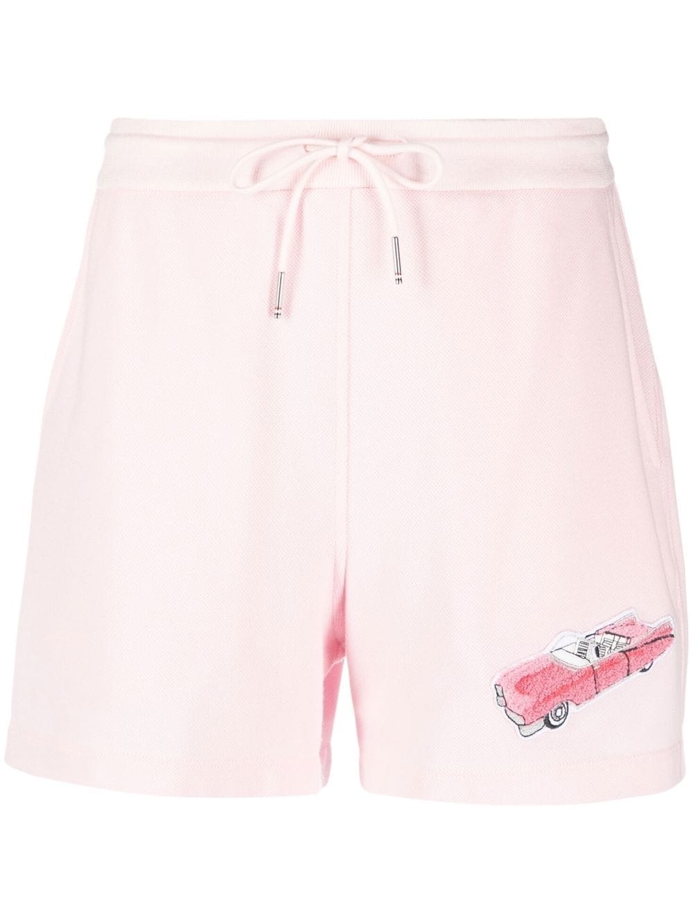 car-embroidered pique shorts light pink cotton pique weave car embroidered patch detail drawstring fastening waist two diagonal pockets to the sides above-knee length Made in Italy Composition Cotton 100% SIZE & FIT Model measurements Height 5 ft 11 in(1.8 m) Bust/Chest 31.88 in(81 cm) Hips 35.03 in(89 cm) Waist 24.01 in(61 cm) FittingInformation This piece fits true to size. We recommend you get your regular size Cut for a relaxed fit Made with a mid-weight fabric