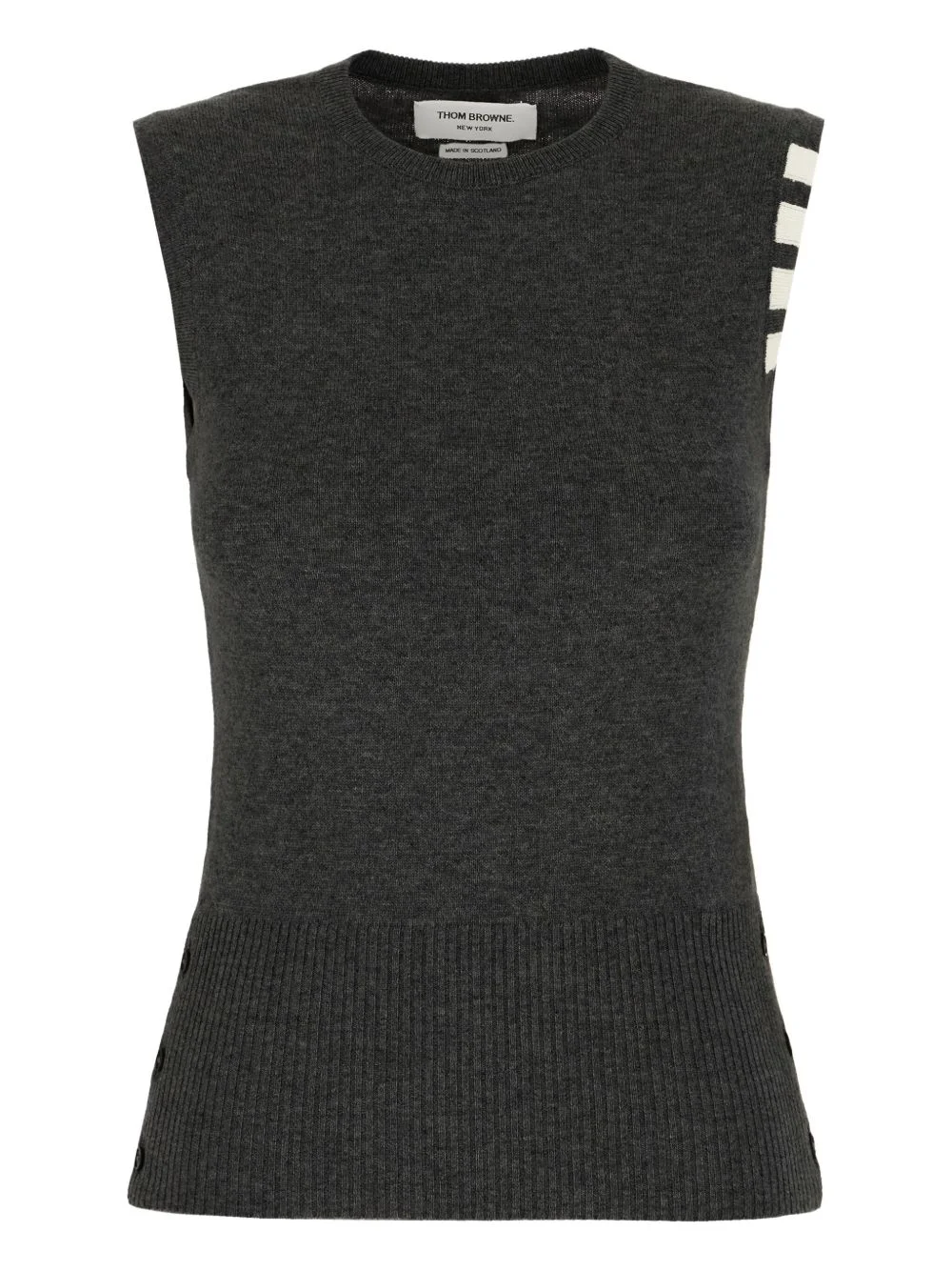 Sleeveless crew neck Shell Top With 4-Bar Stripe In Medium Grey Cashmere