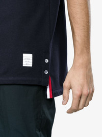 Center-Back Stripe Pique Polo Highlights - This blue thom browne centre back stripe cotton pique polo shirt is made in italy. defined by the signature tricolour stripe running down the back, this style features a point collar, partial front button placket and short sleeves. we think we've earned some sartorial brown-e points from thom by adding this polo shirt to our bag. Made in Italy Composition Cotton 100% SIZE & FIT Measurement CHEST 40.15 in(102 cm) Shoulder Width 16.53 in(42 cm) Washing instructions Hand Wash