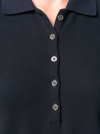Center-Back Stripe Pique Polo Dress Thom Browne's newest edit captures the immaculate craftsmanship and minimalist designs that have come to define the American label. Crafted from navy blue cotton, this center-back stripe pique polo dress features a ribbed polo collar, a front button placket, short sleeves, fitted cuffs, a mid-length, side slits, an asymmetric hem, a tricolour grosgrain tab on the rear, side button fastenings and a signature tricolour striped trim on the back. Made in Italy Composition Cotton 100% SIZE & FIT Model measurements Height 5 ft 10 in(1.78 m) Bust/Chest 33.46 in(85 cm) Hips 36.22 in(92 cm) Waist 23.22 in(59 cm) Washing instructions Dry Clean Only