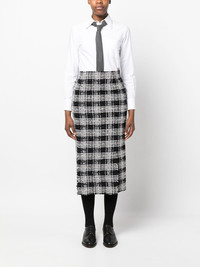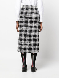 check-pattern calf-length skirt black/white tweed check pattern frayed detailing side button fastening calf-length Made in Italy Composition Outer: Polyester 47%, Acrylic 32%, Viscose 14%, Wool 7% Lining: Silk 100% SIZE & FIT Model measurements Height 5 ft 9 in(1.76 m) Bust/Chest 33.07 in(84 cm) Hips 38.58 in(98 cm) Waist 24.8 in(63 cm) FittingInformation This piece fits true to size. We recommend you get your regular size Designed to be fitted at the waist and hips, loose over the leg Made with a mid-weight fabric Washing instructions Dry Clean Only