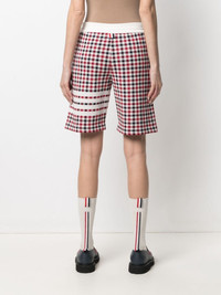 check-pattern logo-patch shorts Here comes the sun. And it's the ideal excuse to reach for these check-pattern shorts from Thom Browne. Not that you needed one. Made in Italy Composition Cotton 100% SIZE & FIT Model measurements Height 5 ft 9 in(1.75 m) Bust/Chest 32.67 in(83 cm) Hips 36.22 in(92 cm) Waist 24.8 in(63 cm) FittingInformation This piece fits true to size. We recommend you get your regular size Designed to be fitted at the waist and hips, loose over the leg Made with a mid-weight fabric Washing instructions Machine Wash