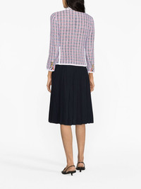 check-pattern tweed jacket Thom Browne continues to blur gender boundaries, borrowing the silhouette of this jacket from classic menswear tailoring. The sport coat design is realised in tricolour tweed in the brand's signature colours of red, white and blue. Highlights - Red/white/blue - Cotton - Tweed - Check pattern - Piped-trim detailing - Notched collar - Front button fastening - Chest welt pocket - Two front flap pockets - Long sleeves - Silk lining Made in Italy Composition Outer: Cotton 100% Lining: Silk 100% SIZE & FIT Model measurements Height 5 ft 10 in(1.78 m) Bust/Chest 31.49 in(80 cm) Hips 35.03 in(89 cm) Waist 23.62 in(60 cm) FittingInformation Designed for a slim fit that sits just away from the body offering a close yet comfortable fit The vented hem offers movement at the rear Made from a midweight non-stretch fabric This piece fits true to size – take your usual size