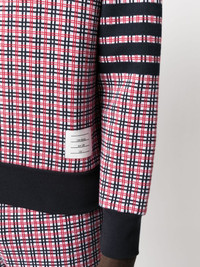 checked jacquard crew-neck sweatshirt THOM BROWNE's sophisticated yet sporty appeal is felt in this cotton sweatshirt. Printed with a check motif, the garment has a crew neck and is decorated with the brand's signature 4-Bar stripe on the left sleeve. Highlights - Off-white/bright red/navy blue - Cotton - Check print - Signature 4-bar tab - Logo patch to the front - Crew neck - Long sleeves - Ribbed cuffs and hem Made in Italy Composition Outer: Cotton 100% SIZE & FIT Model measurements Height 6 ft 2 in(1.87 m) Bust/Chest 36.41 in(92.5 cm) Hips 37 in(94 cm) Waist 29.52 in(75 cm) Measurement CHEST 40.94 in(104 cm) SLEEVE LENGTH 24.01 in(61 cm) LENGTH 25.59 in(65 cm)