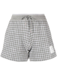 checked tweed track shorts A classic with a THOM BROWNE twist. Crafted from cotton, these track shorts are presented in a grey and white colourway and finished with a logo patch on the front. Highlights - Light grey/off-white - Cotton - Check print - Logo patch to the front - Elasticated drawstring waistband - Two side slit pockets Made In Italy Composition Outer: Cotton 91%, Polyamide 8%, Elastane 1% SIZE & FIT Model measurements Height 5 ft 9 in(1.75 m) Bust/Chest 31.49 in(80 cm) Hips 34.05 in(86.5 cm) Waist 24.21 in(61.5 cm)