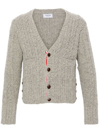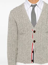 chunky-knit wool cardigan Highlights - Light grey - Wool - Chunky cable knit - Rwb stripe - Ribbed v-neck - Front button fastening - Drop shoulder - Long sleeves - Ribbed cuffs and hem - Two front patch pockets - Signature grosgrain buttoned side tabs - Straight hem Made in Italy Composition Wool 100% SIZE & FIT Model measurements Height 6 ft 2 in(1.87 m) Bust/Chest 38.18 in(97 cm) Hips 36.61 in(93 cm) Waist 29.13 in(74 cm) FittingInformation Made with a midweight knit, this piece offers some stretch
