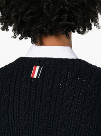 chunky-knit wool cardigan Highlights - Navy blue - Wool - Chunky knit - Signature grosgrain loop tab - Round neck - Drop shoulder - Long sleeves - Ribbed cuffs and hem - Straight hem Made in Italy Composition Wool 100% SIZE & FIT Model measurements Height 5 ft 10 in(1.77 m) Bust/Chest 33.07 in(84 cm) Hips 37 in(94 cm) Waist 24.8 in(63 cm) FittingInformation Designed for a relaxed fit, this piece allows for comfort and movement when worn Made with a midweight knit, this piece offers some stretch This piece fits true to size – take your usual size