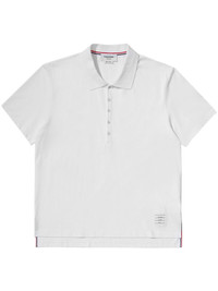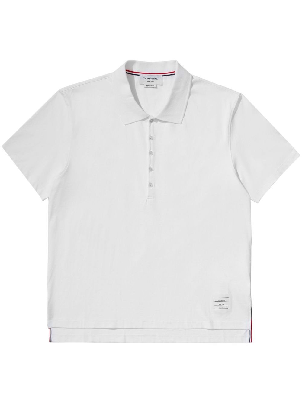 cotton polo shirt Crafted in a preppy white cotton construction, this Thom Browne polo shirt is accented with subtle RWB stripe detailing at the sides. Highlights - White - Cotton - Short sleeves - Polo collar - Front button placket - Rwb stripe Imported Composition Cotton 100% SIZE & FIT Measurement CHEST 42.51 in(108 cm) Shoulder Width 19.29 in(49 cm)