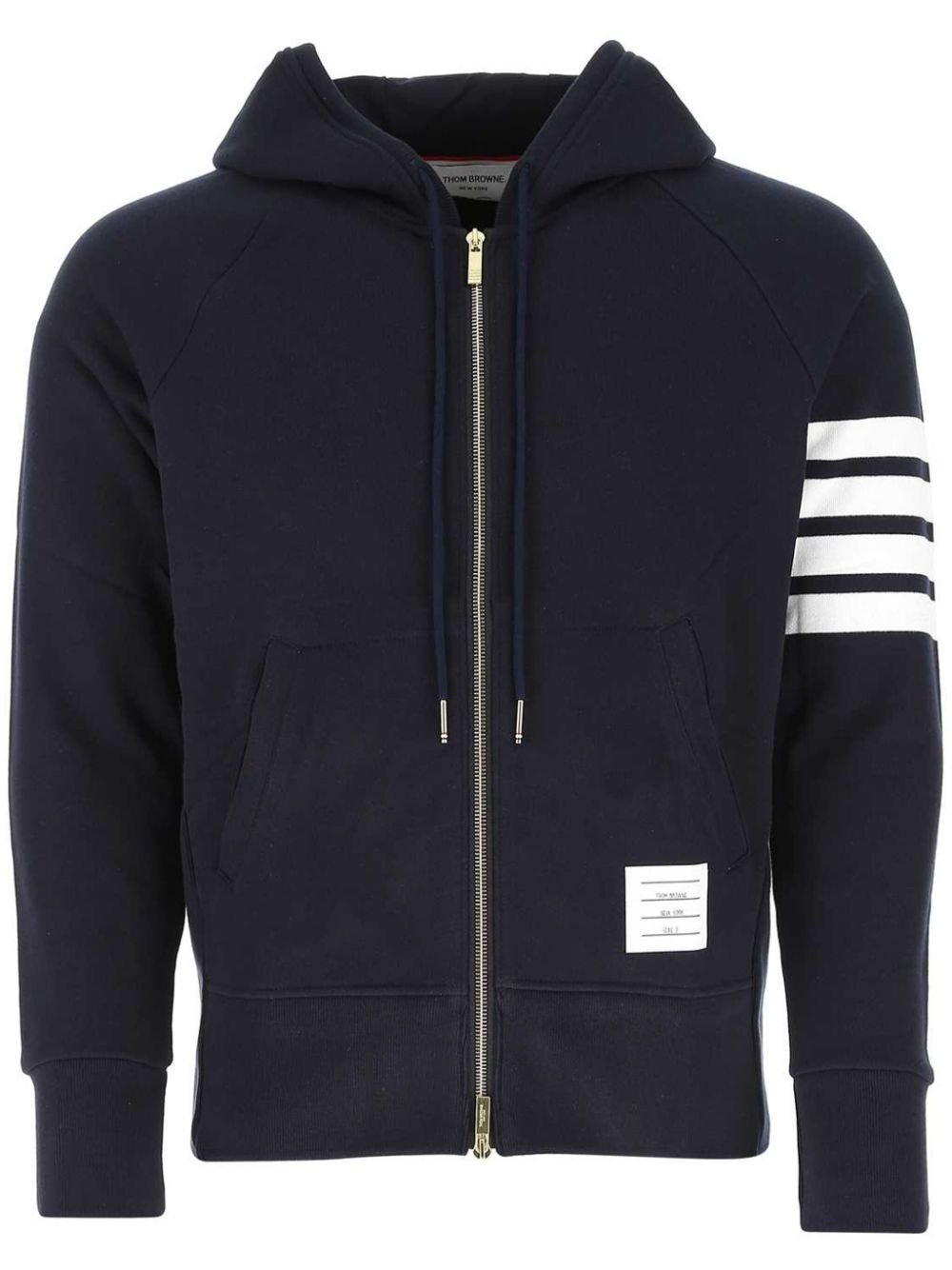 4-Bar bomber jacket Highlights - Navy blue - Cotton - Navy blue - Cotton - Signature 4-bar stripe - Logo tag - Drawstring hood - Front zip fastening - Two diagonal pockets to the sides - Long sleeves - Straight hem Imported Composition Cotton 100% SIZE & FIT Measurement CHEST 33.46 in(85 cm) WAIST 29.13 in(74 cm) SLEEVE LENGTH 28.26 in(71.8 cm) Washing instructions Dry Clean Only