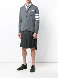 Classic-Rise Pleated Skirt Highlights - Grey wool classic-rise pleated skirt from thom browne featuring a mid rise, a double hook and zip fly, a pleated design, a knee length, an asymmetric hem, a signature tri-colour striped trim and a button tab at the rear. Made in Italy Composition Wool 100% SIZE & FIT Model measurements Height 6 ft 2 in(1.87 m) Bust/Chest 33.85 in(86 cm) Hips 35.82 in(91 cm) Waist 29.52 in(75 cm) Measurement WAIST 32.67 in(83 cm) Washing instructions Dry Clean Only