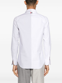 colour-block cotton shirt Famed for its original tailoring, Thom Browne translates its creativity into this shirt. It is cut from cotton to a slightly oversize silhouette, while a panelled design nods to the label's penchant for geometric shapes. Highlights - White/medium grey - Cotton - Interlock twill weave - Colour-block design - Logo patch to the front - Button-down collar - Front button fastening - Long sleeves with buttoned cuffs - Chest patch pocket - Hem gusset - Curved hem Made in Italy Composition Cotton 100% SIZE & FIT Model measurements Height 6 ft 2 in(1.87 m) Bust/Chest 38.18 in(97 cm) Hips 36.61 in(93 cm) Waist 29.13 in(74 cm) FittingInformation Designed for a regular fit, allowing for a comfortably loose fit throughout the body Made from a midweight fabric This piece fits true to size – take your usual size