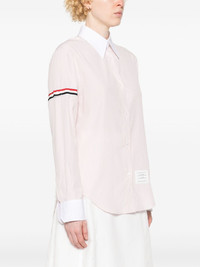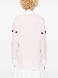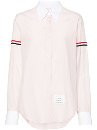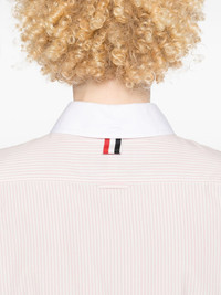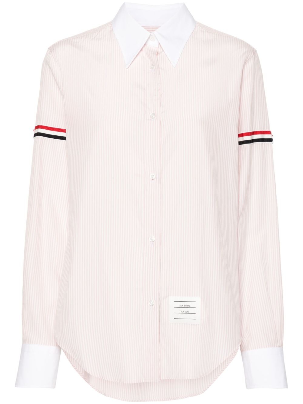 contrast-border striped shirt Highlights - Pink/white - Silk-cotton blend - Textured finish - Vertical stripe pattern - Pointed collar - Contrasting border - Long sleeves - Stripe detailing - Buttoned cuffs - Logo patch to the front - Signature stripe detail to the rear - Locker loop - Curved hem - Front button fastening Made in Italy Composition Silk 66%, Cotton 34% SIZE & FIT Model measurements Height 5 ft 10 in(1.77 m) Bust/Chest 34.25 in(87 cm) Hips 37.4 in(95 cm) Waist 29.13 in(74 cm) FittingInformation Designed to be unstructured, offering a loose fit throughout Made from a lightweight non-stretch fabric This piece fits true to size – take your usual size