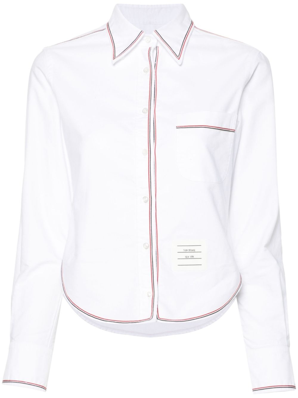 contrast-trim cotton shirt Highlights - White - Cotton - Canvas - Button-down collar - Contrasting trim - Long sleeves - Buttoned cuffs - Chest patch pocket - Logo patch to the side - Signature stripe detail to the rear - Locker loop - Curved hem - Front button fastening Made in Italy Composition Cotton 100% SIZE & FIT Model measurements Height 5 ft 10 in(1.77 m) Bust/Chest 34.25 in(87 cm) Hips 37.4 in(95 cm) Waist 29.13 in(74 cm) FittingInformation Designed for a slim fit that sits just away from the body offering a close yet comfortable fit Made from a midweight non-stretch fabric This piece fits true to size – take your usual size
