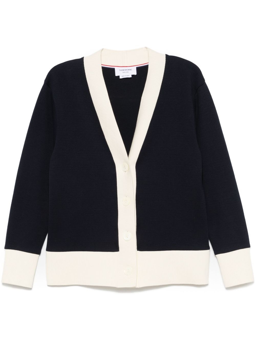 contrasting-trim V-neck cardigan Highlights - Oxford blue - Front button fastening - Ribbed cuffs and hem Made in Italy Composition Cotton 100% SIZE & FIT Model measurements Height 5 ft 9 in(1.76 m) Bust/Chest 32.28 in(82 cm) Hips 35.43 in(90 cm) Waist 25.19 in(64 cm) FittingInformation Designed to be unstructured, offering a loose fit throughout Made with a midweight knit, this piece offers some stretch