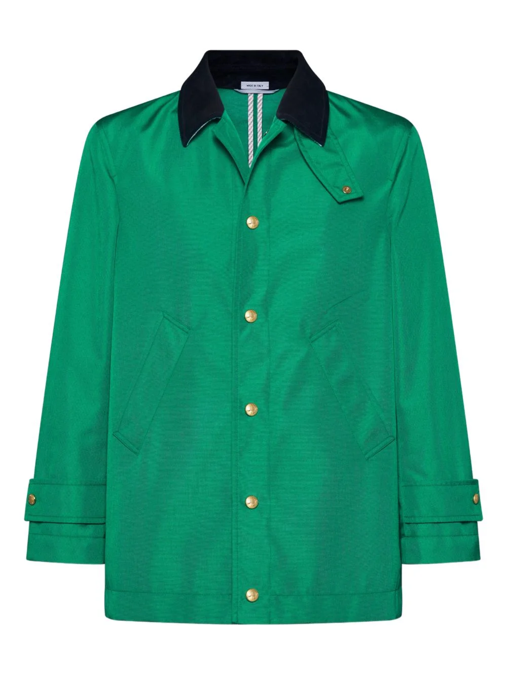 corduroy-collar overcoat Highlights - Green - Corduroy collar - Button fastening - Front flap pockets - Tonal elbow patches Made in Italy Composition Outer: Polyamide 100%, Calf Leather 100% Lining: Cotton 100%, Cupro 100% Washing instructions Read Manufacturer Guidelines