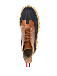 covered outsole wingtip boots Go where no man has gone before. These covered outsole wingtip boots Thom Browne give you the confidence to take the path less travelled with an oversize rubber sole to take on complicated terrains. So put your bravest foot forward in these. Made in Italy Composition Outer: Calf Leather 80%, Rubber 20% Sole: Rubber 100% SIZE & FIT Measurement HEEL 1.77 in(4.5 cm) HEIGHT 6.49 in(16.5 cm) Sole height 1.37 in(3.5 cm)