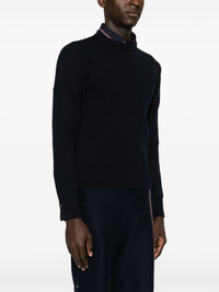 crew-neck cotton jumper Thom Browne’s jumper is spun from navy cotton to a classic crew-neck silhouette, echoing the brand’s affinity for minimalist staples. It’s subtly decorated with a grosgrain loop at the nape. Highlights - Navy blue - Cotton - Crew neck - Long sleeves - Ribbed cuffs and hem - Buttoned cuffs - Signature grosgrain side tabs - Signature grosgrain loop tab to the rear - Straight hem Made in Italy Composition Cotton 100% SIZE & FIT Model measurements Height 6 ft 2 in(1.87 m) Bust/Chest 36.41 in(92.5 cm) Hips 37 in(94 cm) Waist 29.52 in(75 cm) FittingInformation Designed for a regular fit, offering a comfortable loose fit throughout the body Made with a midweight knit, this piece offers some stretch This piece fits true to size – take your usual size