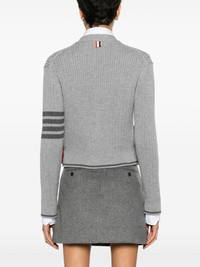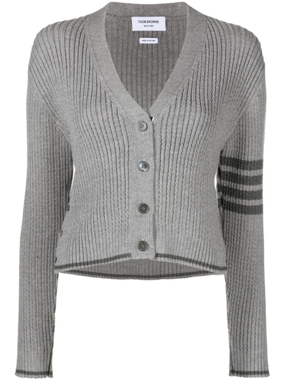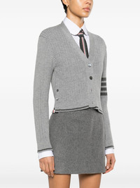 cropped cable-knit cardigan Highlights - Light grey/medium grey - Virgin wool - Knitted construction - Cable knit - Stripe detailing - Striped edge - Signature grosgrain loop tab - V-neck - Front button fastening - Drop shoulder - Long sleeves - Ribbed cuffs - Side button fastening - Ribbed hem - Cropped Imported Composition Virgin Wool 100% SIZE & FIT Model measurements Height 5 ft 9 in(1.76 m) Bust/Chest 31.88 in(81 cm) Hips 35.43 in(90 cm) Waist 24.8 in(63 cm) FittingInformation Designed for a slim fit that sits just away from the body offering a close yet comfortable fit Made with a midweight knit, this piece offers some stretch This piece fits true to size – take your usual size