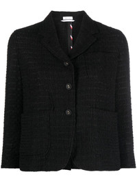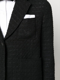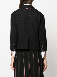 cropped sack sport tweed jacket black cotton-silk blend tweed notched lapels three front patch pockets front button fastening three-quarter length sleeves buttoned cuffs central rear vent cropped Made in Italy Composition Lining: Silk 56%, Cotton 44% Outer: Polyamide 33%, Cotton 24%, Viscose 24%, Polyester 12%, Acrylic 5%, Wool 2% SIZE & FIT Model measurements Height 5 ft 11 in(1.8 m) Bust/Chest 31.49 in(80 cm) Hips 36.22 in(92 cm) Waist 25.59 in(65 cm) FittingInformation This piece fits true to size. We recommend you get your regular size Cut for a slim fit Made with a mid-weight fabric