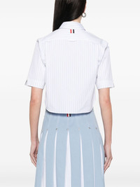 PINSTRIPE POPLIN CROPPED SHORT SLEEVE SHIRT